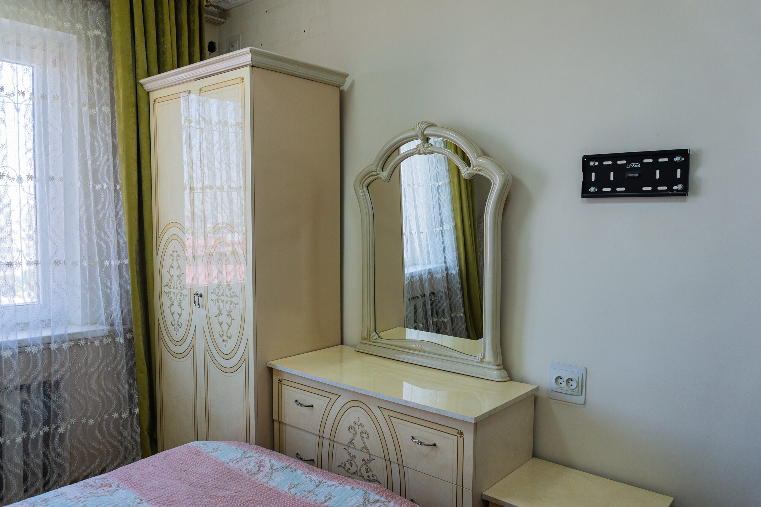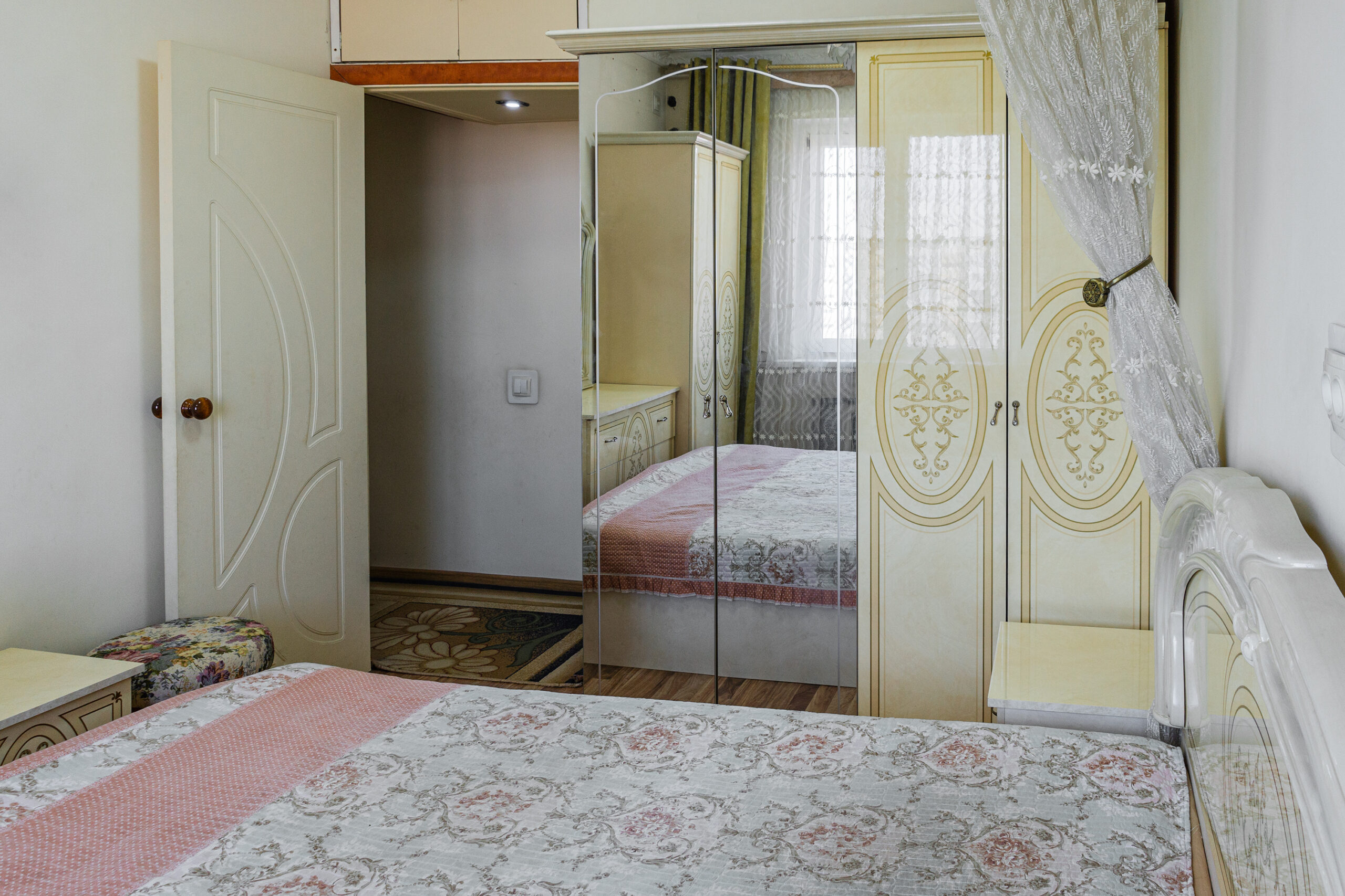 | Убранство квартиры | Оборудована всеми необходимыми мебельными принадлежностями: просторная двухкомнатная кровать, удобный кожаный диван с двумя креслами |