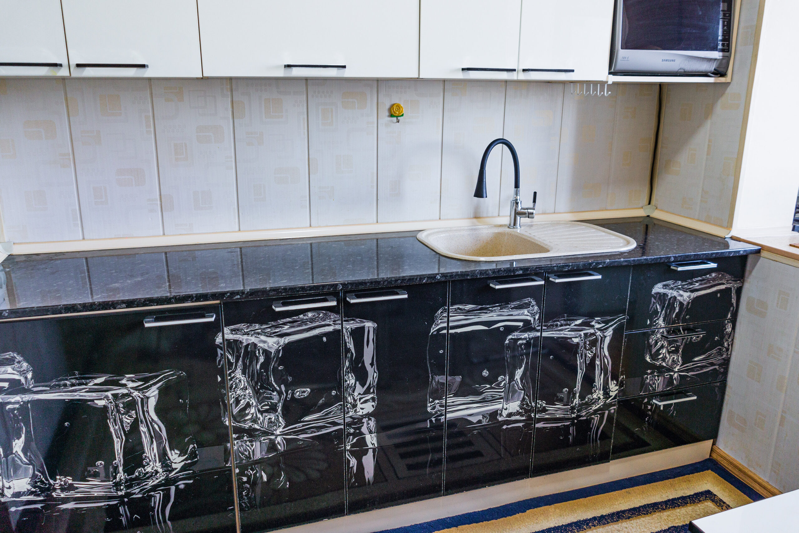 | Кухня | Кухня оборудована всем необходимым: газовая плита, встроенная кухонная гарнитура с каменной раковиной, СВЧ печь для быстрого подогрева еды, настенный телевизор, часы настенные, холодильник Samsung, кухонный обеденный стол. |